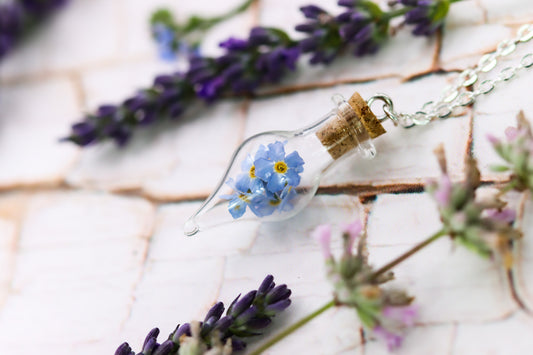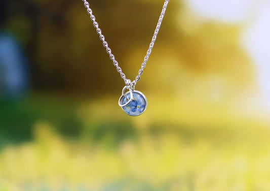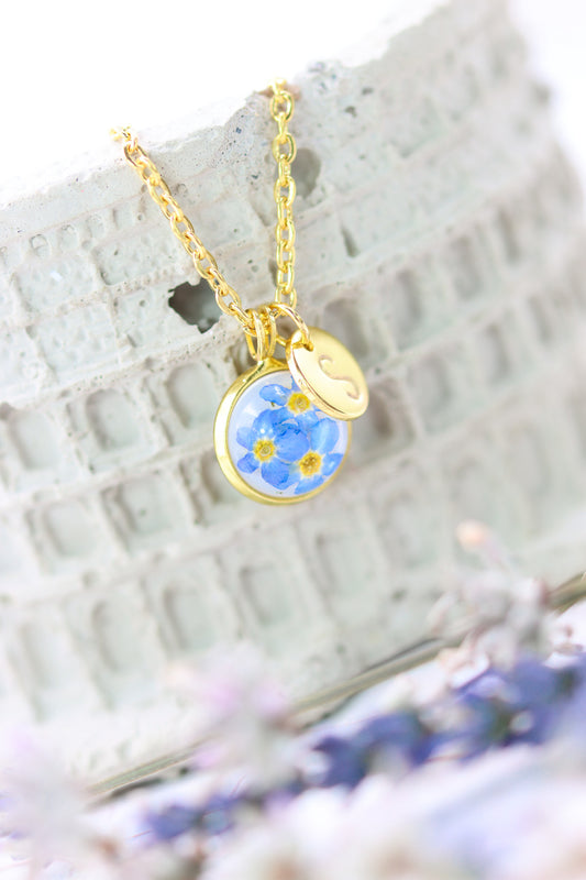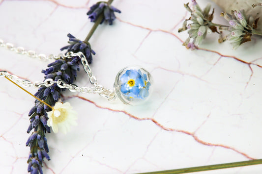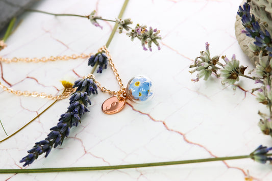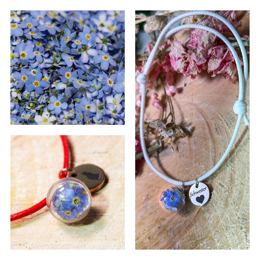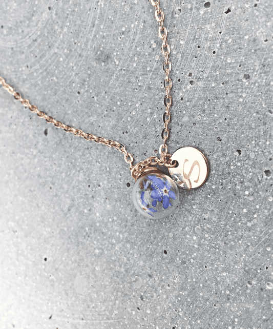 Kette Vergissmeinnicht Anhänger Glaskugel gold/roségold/silber Personalisiert