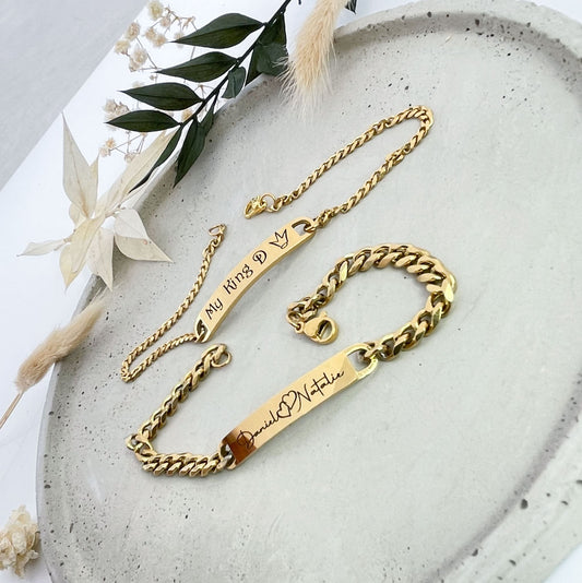 Farbauswahl 2er-Set Partnerarmband Gravur Namenskette ID Datum Symbol Partner