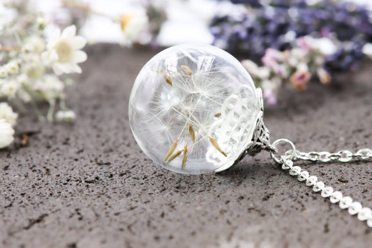 Anhänger "Pusteblume" Personalisierter ausdrucksvoller Harz Schmuck silber Halskette oval