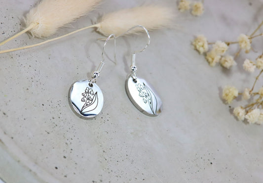 Ohrringe Gravur Geburtsblumen Anhänger einzigartig personalisiert