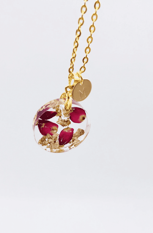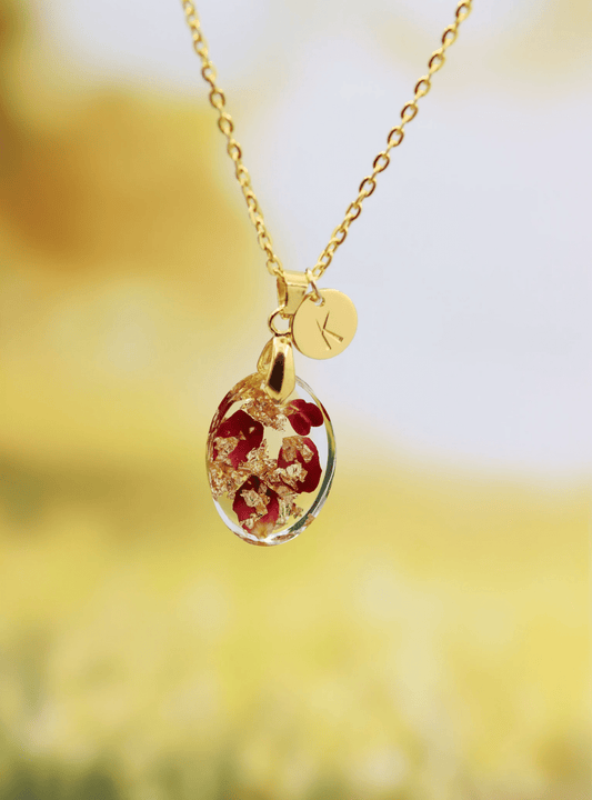 Rose getrocknet, echte Blüten in Harz mit Blattgold Personalisiert Anhänger Oval