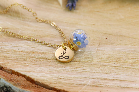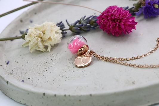 Infinity Rosenblüten Anhänger Glaskugel Personalisiert