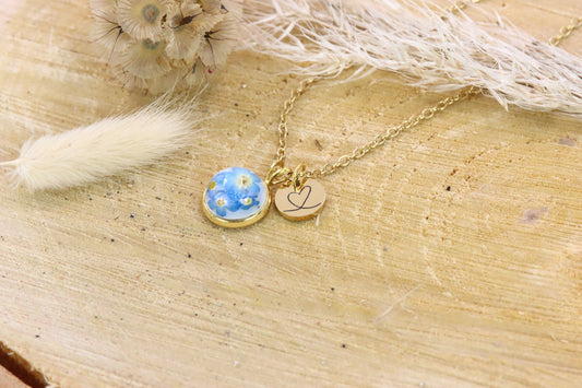 Gold Vergissmeinnicht Gravur Anhänger einzigartig personalisiert