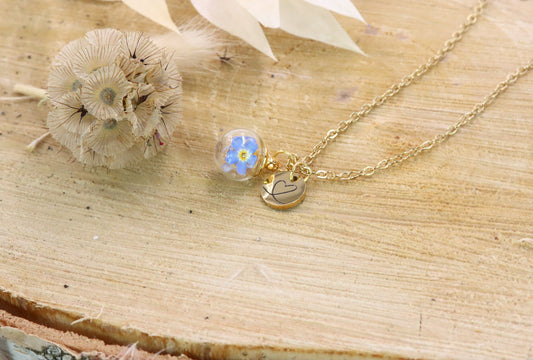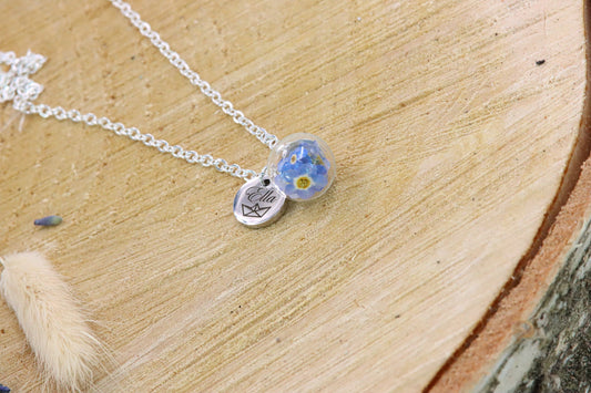Herzschleife Kette Vergissmeinnicht Anhänger Glaskugel