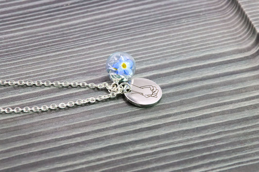 Gravur "Hände" Anhänger einzigartig personalisiert mit Vergissmeinnicht Kugel