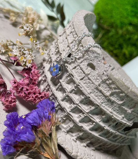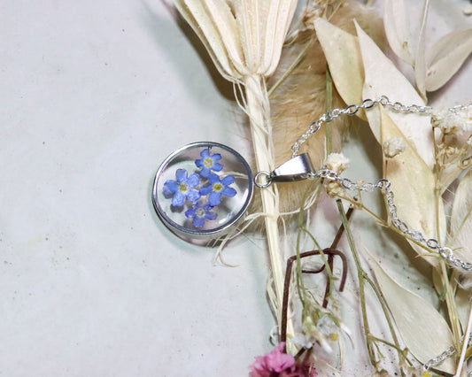 Zeitloser Ovaler Vergissmeinnicht Blumen Anhänger in Gießharz