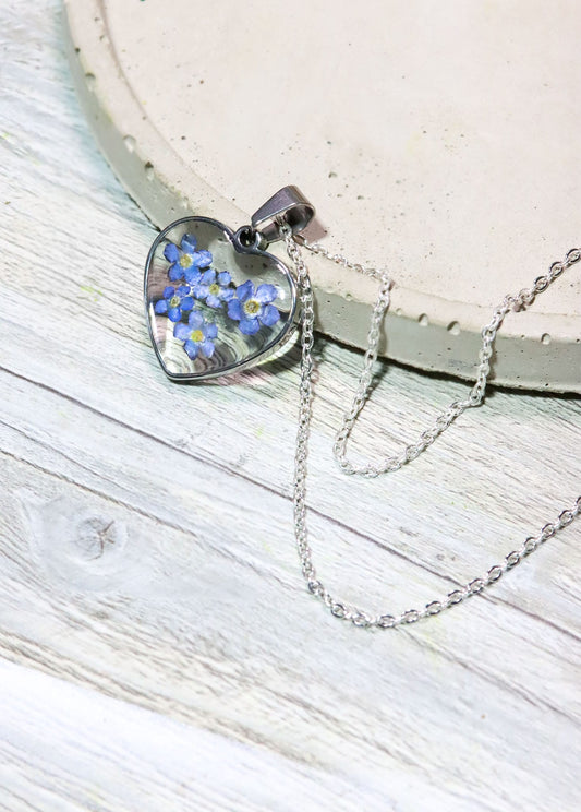 Zeitloser Herz Vergissmeinnicht Anhänger in Gießharz