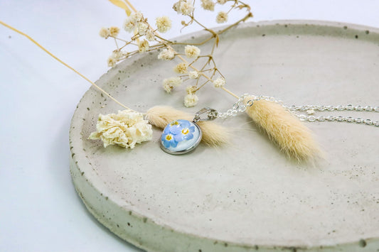 Glas "Vergissmeinnicht" Medaillon mit echten Blumen konserviert