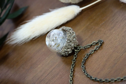 Nuss Glaskugel echte Eichelkappe mit Kette