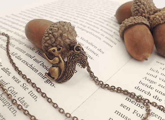 Nuss "Eichhörnchen" Echte Eichel Kette bronze