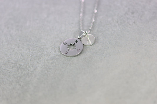Wegweiser Personalisiert Buchstabe Kompass Anhänger in silber