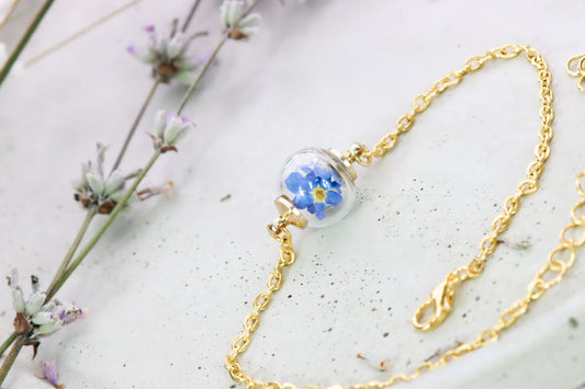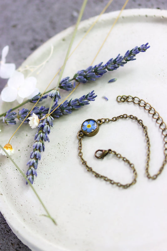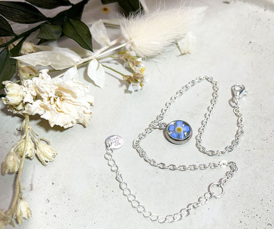 Armband "Vergissmeinnicht" Anhänger Harz Silber