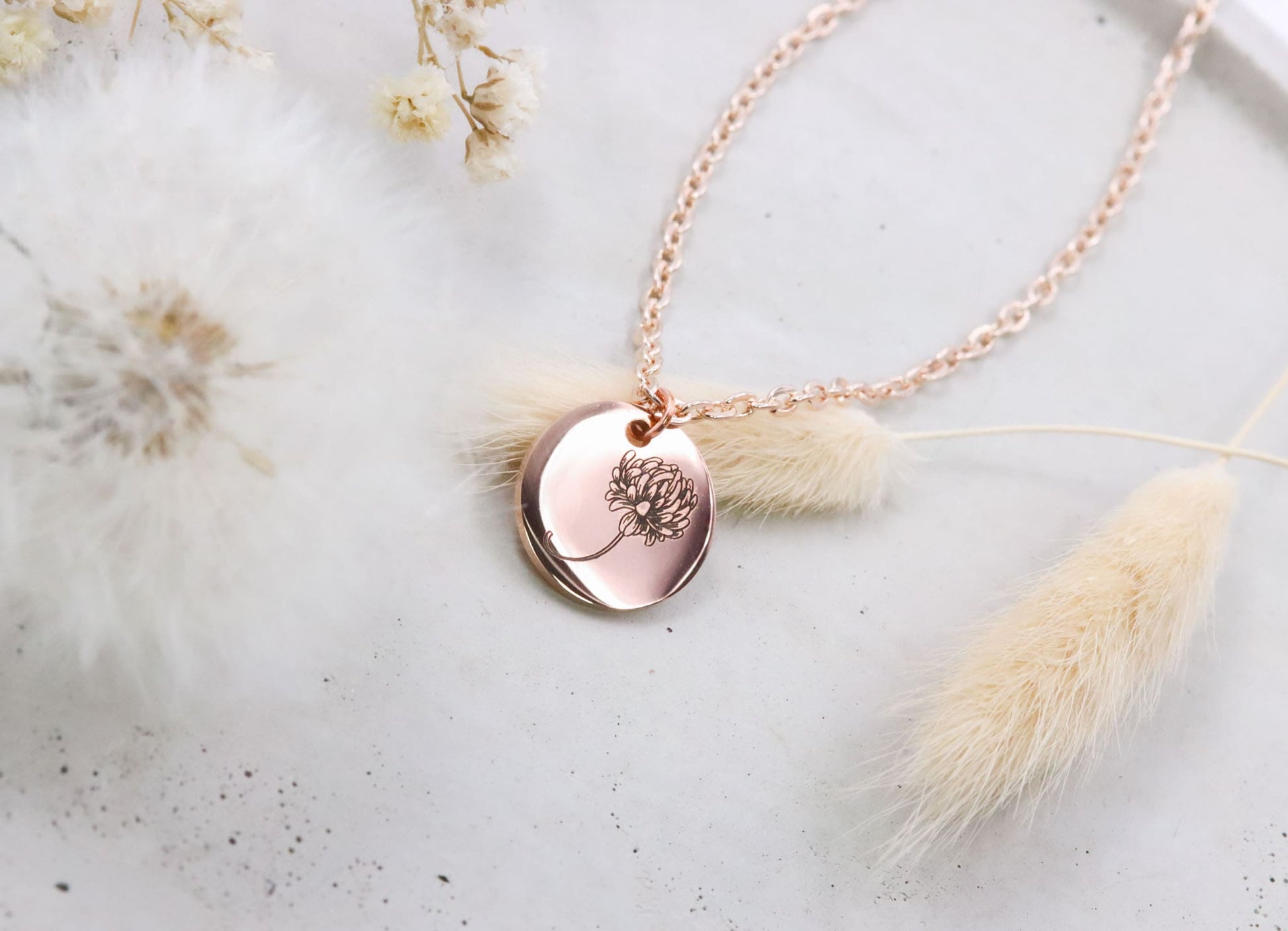 Gravur Geburtsblumen Anhänger einzigartig personalisiert Birthflower